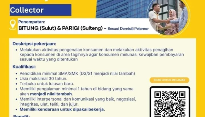 • Wajib memiliki kendaraan pribadi untuk digunakan bekerja