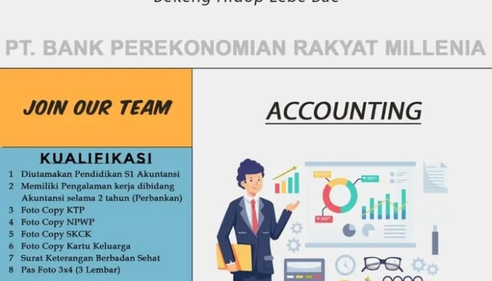 PT. Bank Perekonomian Rakyat Millenia (Bank Millenia) sedang membuka lowongan untuk posisi Accounting.