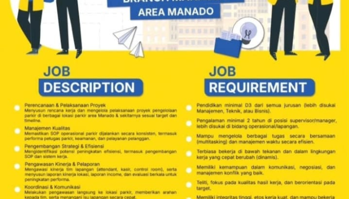 Kami sedang mencari seorang Branch Manager yang dinamis, proaktif, dan memiliki visi strategis untuk memimpin operasional kami di Area Manado. Jika Anda adalah seorang problem solver dengan jiwa kepemimpinan yang kuat, mari bergabung dan bangun karir Anda bersama kami.