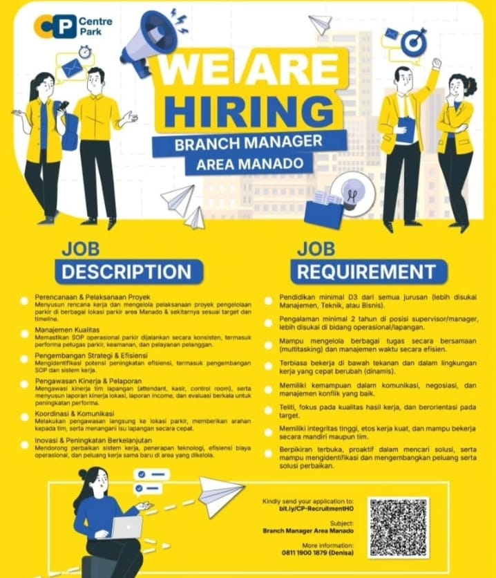 Anda seorang pemimpin yang berpengalaman dalam mengelola operasional, memimpin tim, dan mencapai target bisnis? Siap mengambil alih tanggung jawab untuk memimpin sebuah cabang di salah satu perusahaan manajemen parkir terbesar dan paling profesional di Indonesia? Centre Park membuka kesempatan karir terbaik untuk Anda!