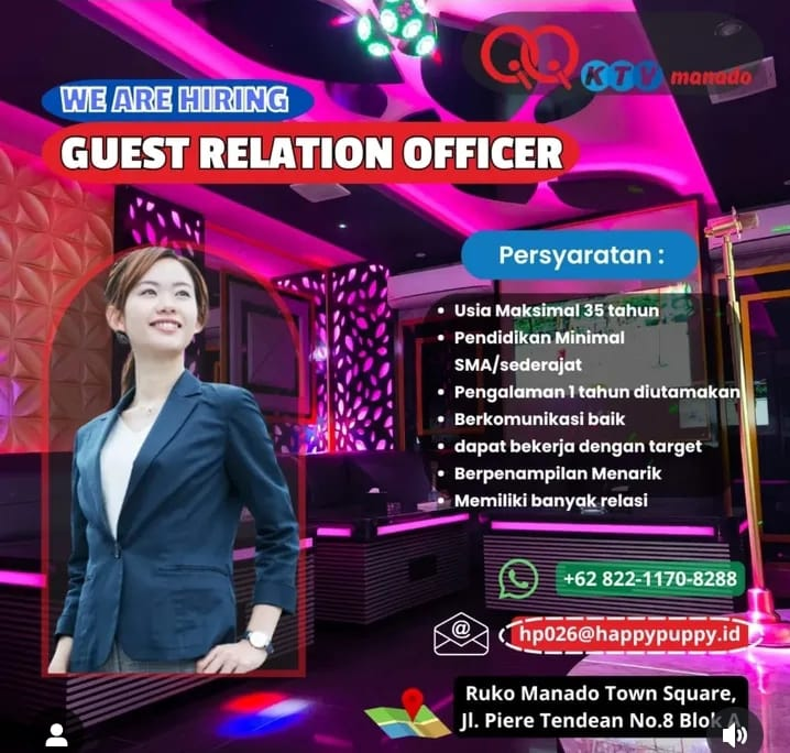 QQ KTV Manado sedang mencari kandidat untuk posisi Guest Relation Officer.