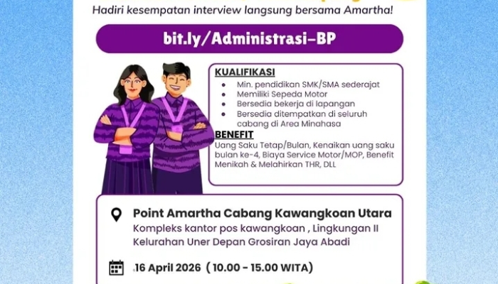 - Penempatan: Bersedia ditempatkan di seluruh cabang Amartha Area Minahasa.