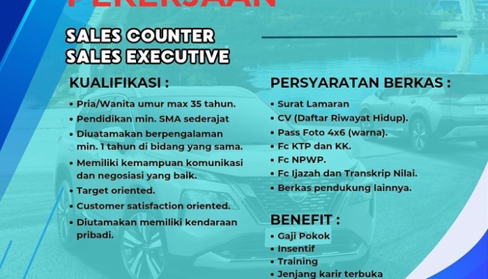 • Pengalaman: Diutamakan memiliki pengalaman minimal 1 tahun di bidang yang sama (Sales/Otomotif).