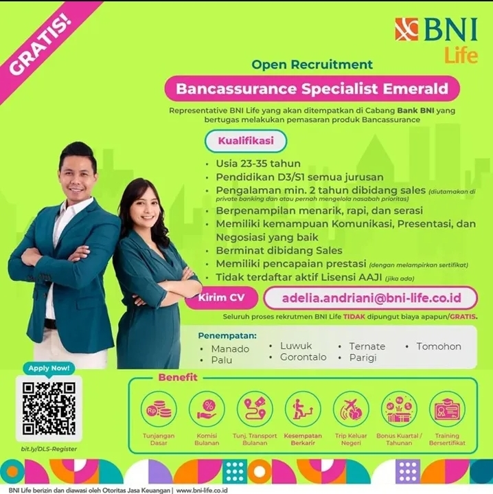 Apakah Anda seorang profesional di bidang penjualan yang ambisius dan mencari jenjang karier menjanjikan di industri asuransi perbankan? BNI Life membuka kesempatan emas melalui program Open Recruitment untuk posisi Bancassurance Specialist Emerald.