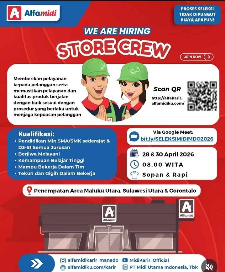 Lowongan Kerja Alfamidi 2026: Rekrutmen Store Crew Area Sulawesi & Maluku Utara