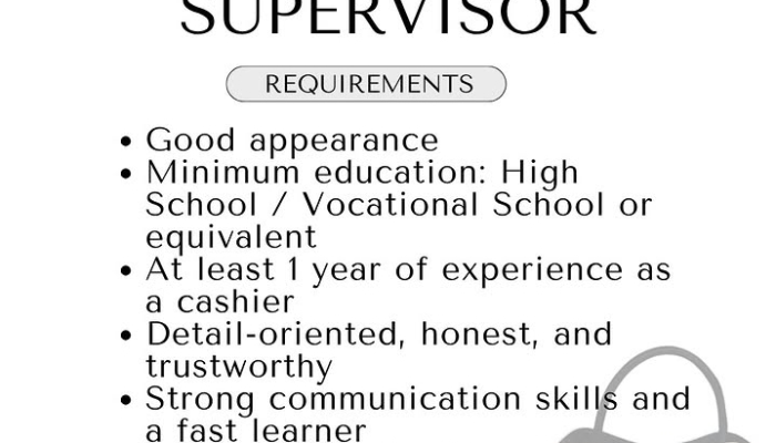 - Pengalaman: Memiliki pengalaman minimal 1 tahun sebagai Kasir (Cashier).